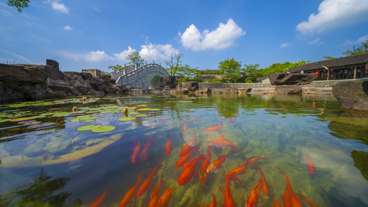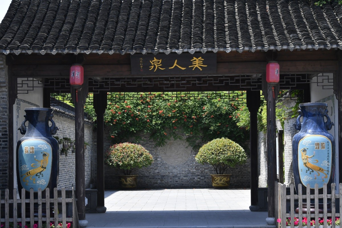 自古以来,“名酒产地,必有佳泉”。洋河所处地带地势低洼,水源富集,泉眼众多,水质清澈透明,绵软甘甜,百姓家中多有“自流井”,其中又以厂区内的美人泉水源最为丰富。洋河美人泉景观园为古址复建、扩建,建有美人湖、美人桥、品泉轩、咏泉林、赏泉榭、古宅等文化景观节点,再现了洋河美人泉历史风貌和古槽坊酿造工艺。