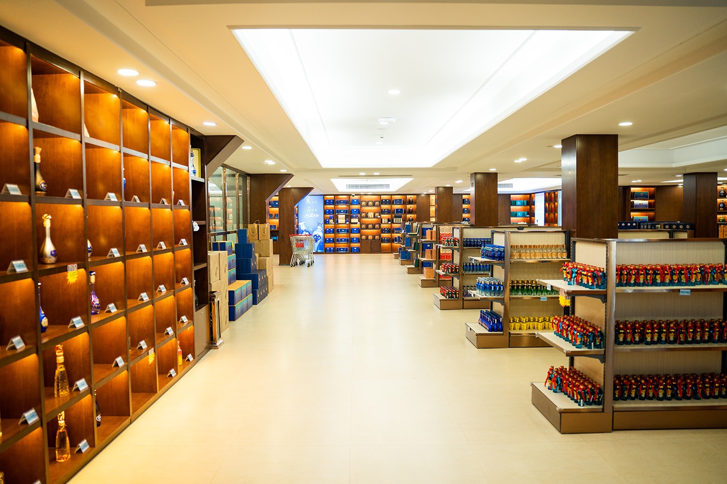 产品体验馆占地面积约1200平方米,分为成品展示区、销售区、休息区三大区域,展示酒类商品近200种。馆内产品齐全,种类丰富,含酒类产品、文创产品、土特产等产品,是实现产品展示、商品销售、个性化定制、休憩体验、便民服务等多功能为一体的产品体验中心。