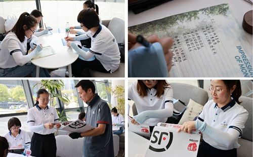 初夏的酒都公园凉风习习,酒史馆前的大草坪,布置精美雅致,粉红气球与鲜花交相辉映,将仪式感拉满,欢迎酒嫂的到来。“我爱洋河”“我是洋河酒嫂,我自豪”“爱上洋河,爱在洋河”“小家美满,洋河大家越来越好”……酒嫂拍照留念记录下最美好的时刻,并写下对爱人、对家庭、对洋河最真挚的祝愿。